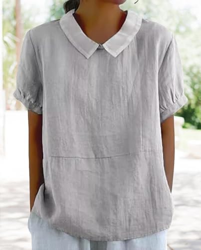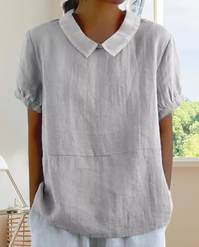 Boho Cotton Shirt for Womens Floral Printed Short Sleeve Summer Linen Shirts Casual Collared Trendy Blouse Tops