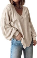 Be the first to review “BTFBM Women’s Casual V Neck Ribbed Knit Shirts 2025 Fall Pullover Tunic Tops Loose Balloon Long Sleeve Blouses Top” Cancel reply