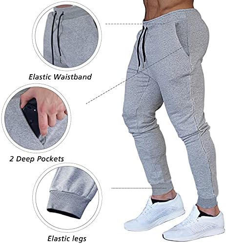 BUXKR Men’s Slim Joggers Workout Pants for Gym Running and Bodybuilding Athletic Bottom Sweatpants with Deep Pockets