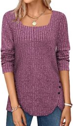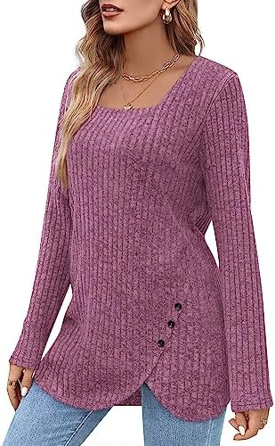 BZB Women’s Sweaters Fall 2024 Lightweight Long Sleeve Square Neck Tunic Tops