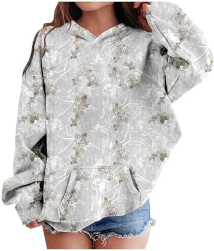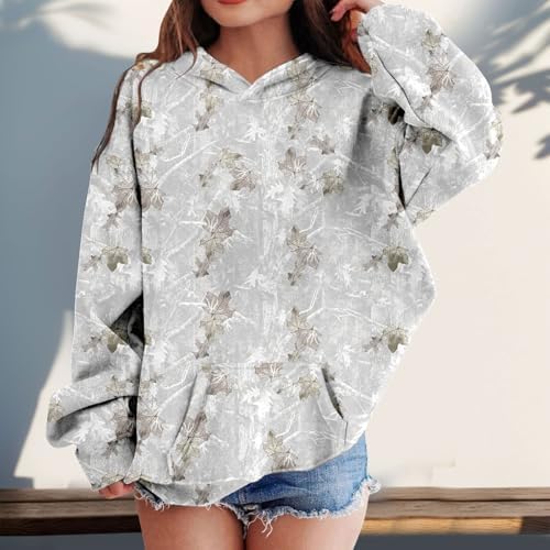 Camo Hoodies for Teen Girls Cute Sweatshirt Maple Leaf Print Long Sleeve Trendy Sweatshirts Pullover Tops with Pocket