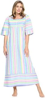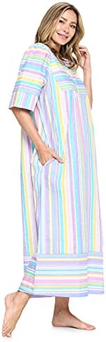 Home Trendy Summer Collection Casual Nights Women’s Zip Front Woven House Dress | 3/4 Sleeves Housecoat Long Duster Lounger