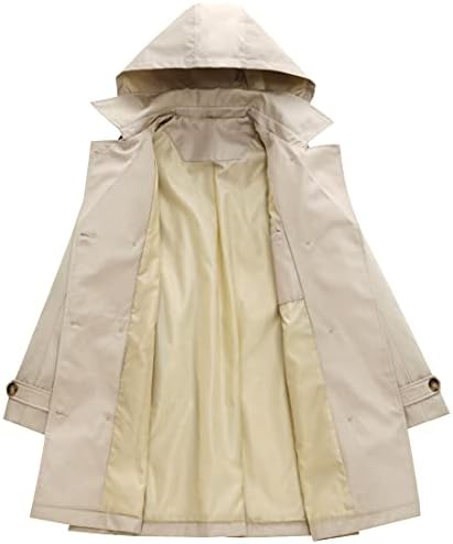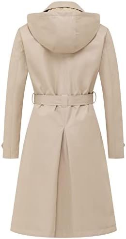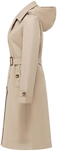 Chrisuno Women’s Double Breasted Long Trench Coats Mid-Length Belted Overcoat Dress Jacket with Detachable Hood