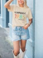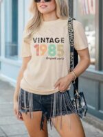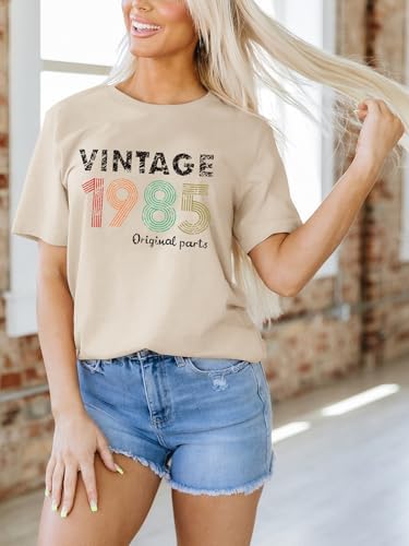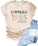 Chulianyouhuo 40th Birthday Gift Women Vintage 1985 T Shirt Letter Print Birthday Party Tops Casual Short Sleeve Tees