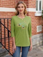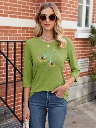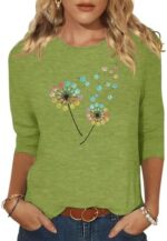 Chulianyouhuo Womens 3/4 Sleeve T Shirt Sunflower Graphic Tees Dandelion Flower Print Summer Casual Tops Blouse
