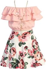 Be the first to review “Cold Shoulder Crop Top Ruffle Layered Top Flower Girl Skirt Sets for Girl” Cancel reply