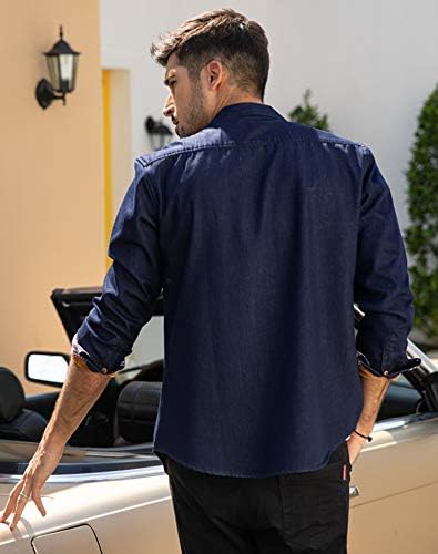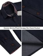 COOFANDY Men’s Casual Dress Shirt Button Down Shirts Long-Sleeve Plaid Collar Denim Work Shirt
