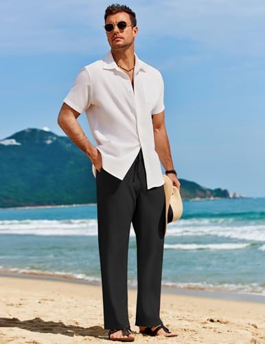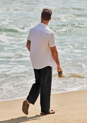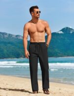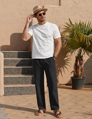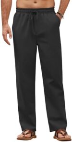 COOFANDY Men’s Casual Linen Pants Loose Fit Elastic Waist Drawstring Lightweight Pant Summer Beach Trousers