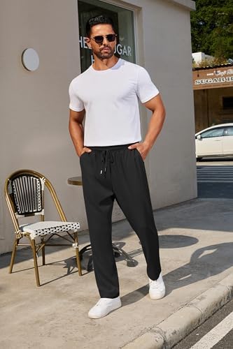 COOFANDY Men’s Casual Pants Waffle Knit Yoga Pants Lightweight Sweatpants Open Bottom Lounge Trousers