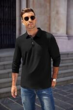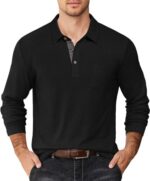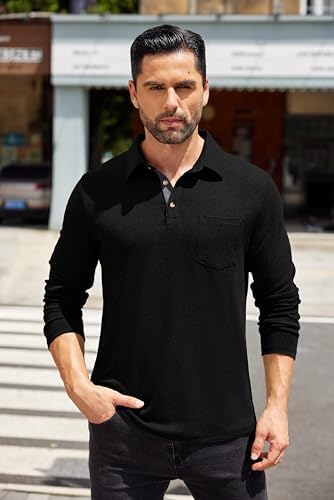 COOFANDY Men’s Long Sleeve Polo Shirt Casual Dress Button Polo T Shirt with Pocket Basic Lightweight Collared Golf Shirt
