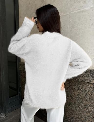 Home Trendy Winter Collection COZYPOIN Womens Fuzzy Mohair Cardigan Open Front Button Down V Neck Long Sleeve Sweater Slouchy Drop Shoulder Knit Coat