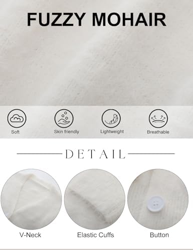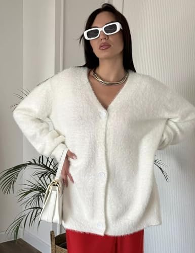 COZYPOIN Womens Fuzzy Mohair Cardigan Open Front Button Down V Neck Long Sleeve Sweater Slouchy Drop Shoulder Knit Coat