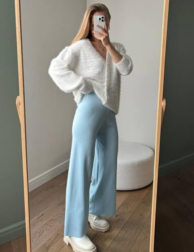 Viottiset Women’s 2 Piece Outfits Casual V Neck Knit Wide Leg Sweater Lounge Set Sweatsuit