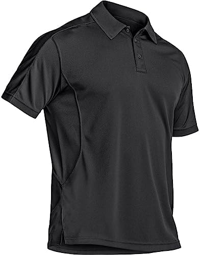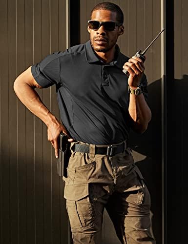 CQR Men’s Polo Shirts, Tactical Short Sleeve Golf Performance Shirts, Lightweight Dry Fit UPF 50+ Pique
