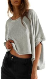Dokotoo Summer Shirts 2025 Womens Solid T Shirts for Women Loose Oversized Tops Basic Tee