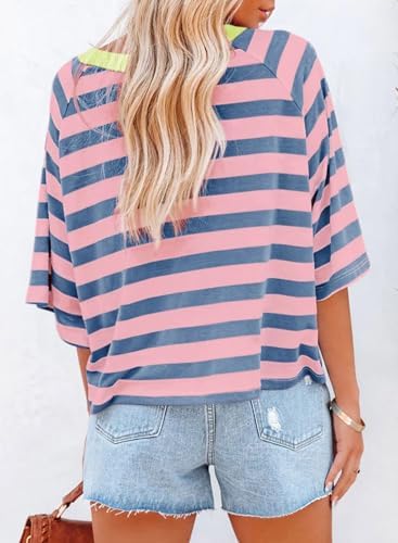 Dokotoo Tops for Women Striped 2025 Fashion T Shirts for Women Color Block Crewneck Design Loose Basic Tee