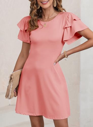 Dokotoo Women 2025 Summer Ruffle Edge Sleeve Dresses Floral Casual Beach Mini Dress with Pocket