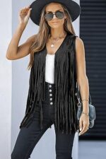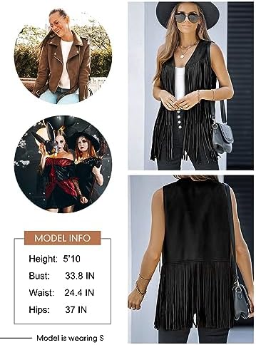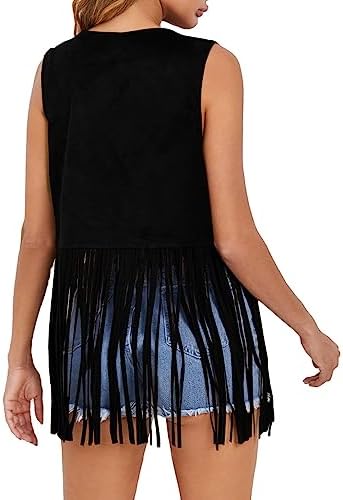 Dokotoo Womens Fringe Vest 70s Hippie Costume Sleeveless Cowgirl Western Faux Suede Tassel Leather Outerwear