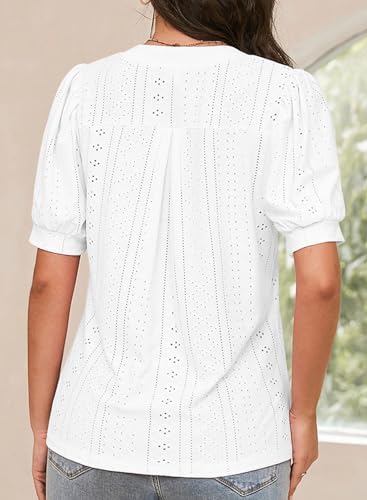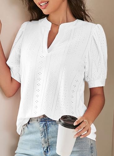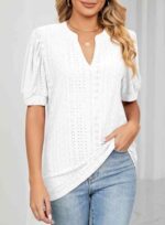 Dokotoo Womens Summer Business Casual Blouses V Neck Short Sleeve Shirts Hollow Out Cute Lace Tops
