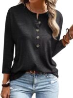 EADINVE Women’s 3/4 Sleeve T-Shirts Crew Neck Buttons Cute Casual Tunic Tops Basic Tees Blouses Loose Fit Pullover 2024
