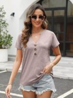 EADINVE Womens Tshirts V Neck Short Sleeve Buttons Tops Batwing Sleeve Tee Summer Color Block Blouse Loose Fit 2024 Shirs