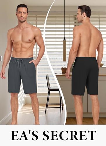 Home Bottoms EA’S SECRET Mens Pajama Shorts Bamboo Drawstring Men’s Sleep Shorts Soft Lounge Pajama Bottoms with Pockets 2 Pack