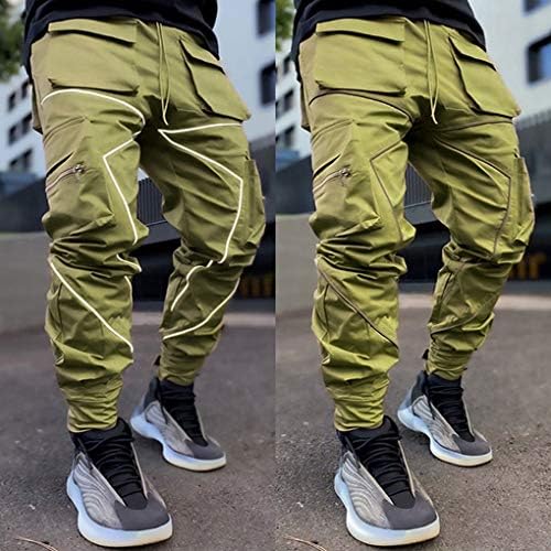 ebossy Men’s Multi Pocket Fashion Cargo Pants Technical Reflective Jogger Pants