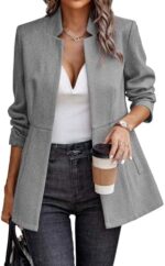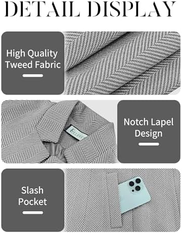 Home Accessories ELLEVEN Women’s Open Front Herringbone Blazer-Business Casual Long Sleeve Work Jacket with Full Lining and Padded Shoulders