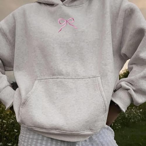 Embroidery Hoodies Women Cute Bowknot Graphic Preppy Pullover for Teen Girl Oversized Long Sleeve Hood Sweatshirt