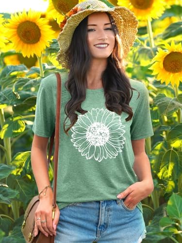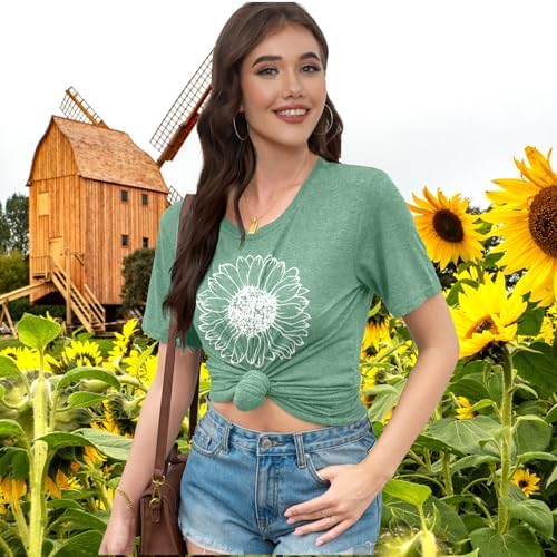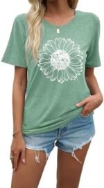 EUOW Women’s Sunflower Graphic Shirts Boho Flowers Tee Tops Cute Summer Vintage Short Sleeve Holiday T Shirt