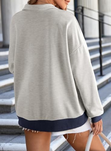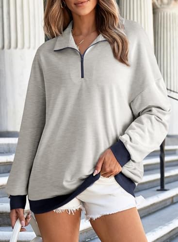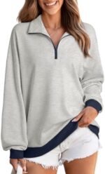 EVALESS Oversized Sweatshirt for Women 2024 Fall Outfits Fashion Long Sleeve Shirts Striped Quarter Zip Pullover Tops