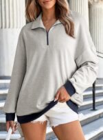Be the first to review “EVALESS Oversized Sweatshirt for Women 2024 Fall Outfits Fashion Long Sleeve Shirts Striped Quarter Zip Pullover Tops” Cancel reply