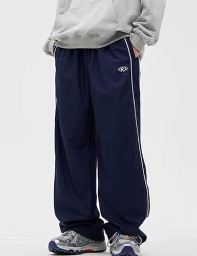 FCOOLYEET Men Track Pants Y2k Drawstring Lightweight Sweatpants Cool Parachute Pants Streetwear