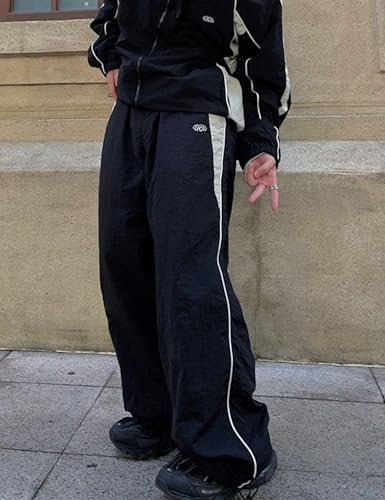FCOOLYEET Mens Wide Leg Sweatpants Y2k Baggy Track Pants Goth Parachute Pants Cool Sweatpants for Men