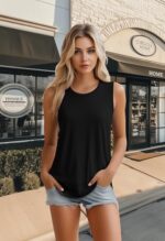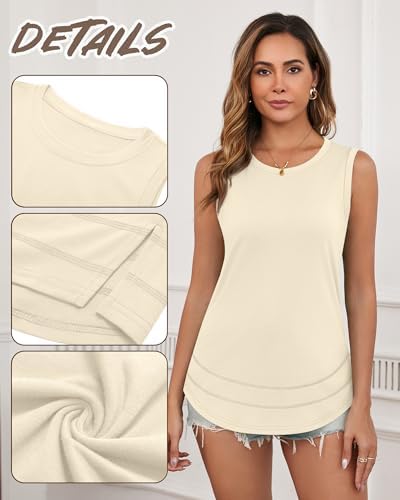 Ficerd 3 Pack Women’s Tank Tops Sleeveless Crew Neck Summer T-Shirts Side Curved Hem Loose Casual Blouses