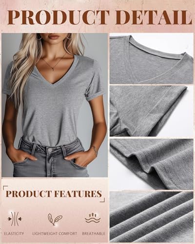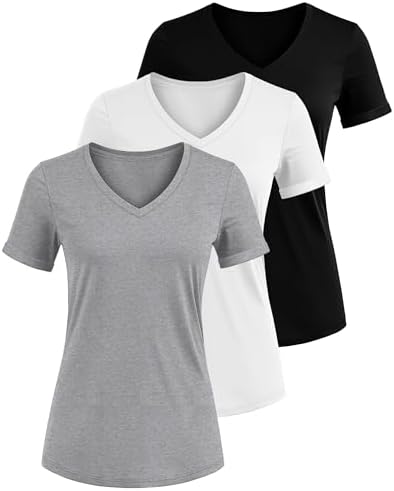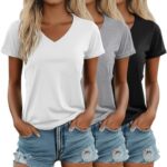 Ficerd 3 Pack Women’s V Neck T Shirts, Summer Casual Short Sleeve Tops Loose Fit Rolled Sleeve Tees 2025 Trendy Cotton Shirts