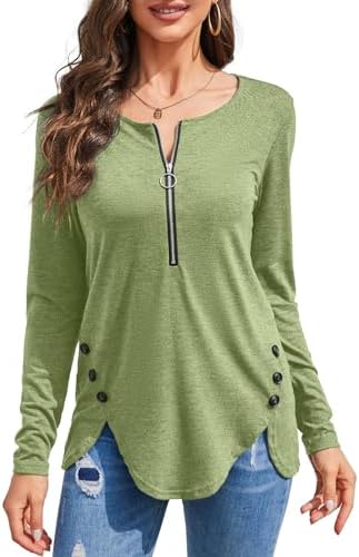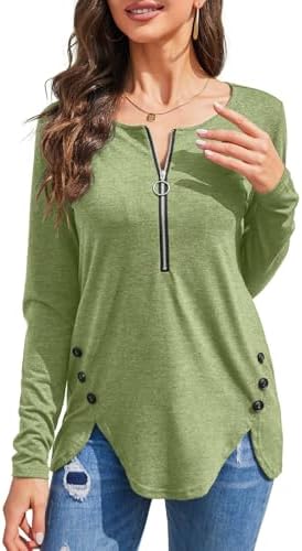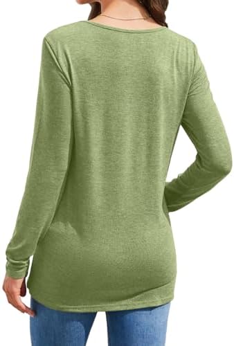 Fisoew Womens Casual Long Sleeve Tunic Tops Round Neck Shirt Button Side Basic Tees Wearring with Leggings 2024