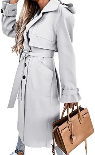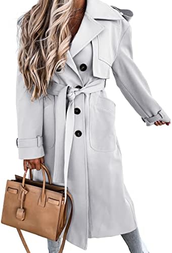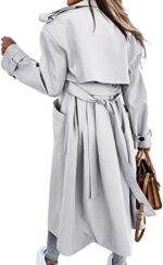 Fisoew Women’s Double Breasted Long Trench Coat Windproof Classic Lapel Belted Overcoat with Pockets