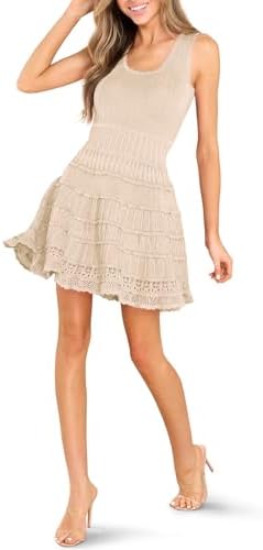 Be the first to review “Fisoew Womens Summer Mini Dresses Casual Crewneck Knitted Crochet Hem Flowy Tank Sundress” Cancel reply