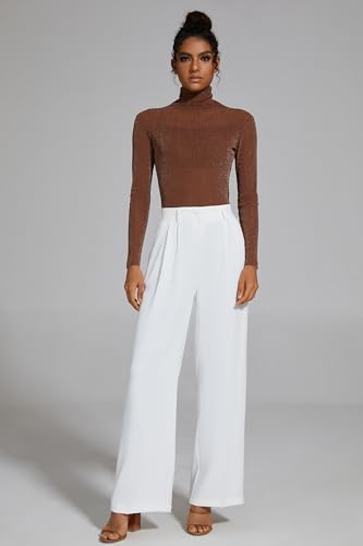 FUNYYZO Wide Leg Pants Women’s High Elastic Waisted in The Back Business Work Trousers Long Straight Suit Pants