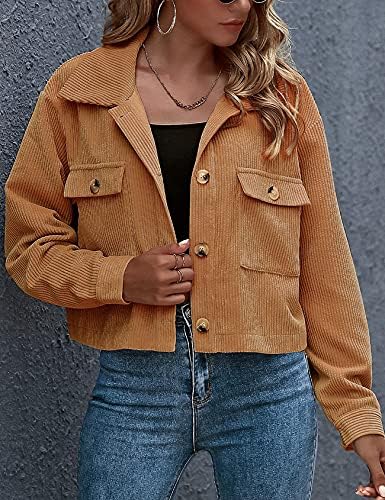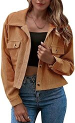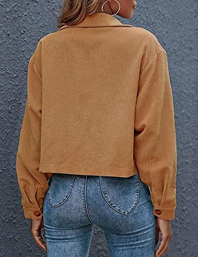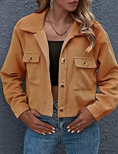 Gihuo Women’s Fashion Cropped Shacket Button Down Corduroy Shacket Jackets Casual Plaid Long Sleeve Crop Jackets Tops
