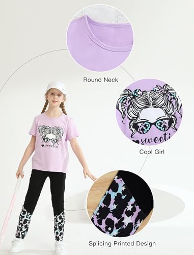 Girl Clothes Cute Cool Girl Tops Splicing Pants 2 Piece Girls Summer Outfits, Solid Color, 6-14 Years