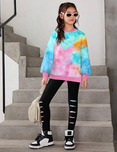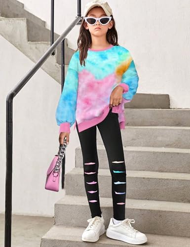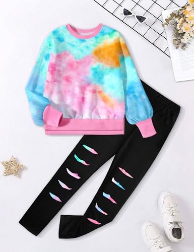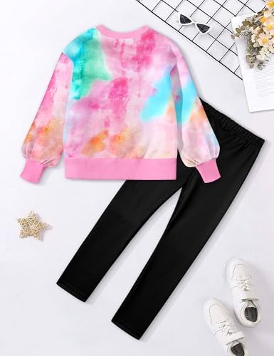 Girls Clothes, Girls Outfits Tie Dye Sweatshirt Tops and Leggings Sweatpants 2 Piece Fall Winter Clothes Set 6-14T
