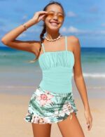 Be the first to review “Girls Tankini Swimsuits Two Piece Tropical Print Pleated Bathing Suit with Ruffle Drawstring Skirt Swimwear 9-16T” Cancel reply
