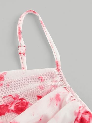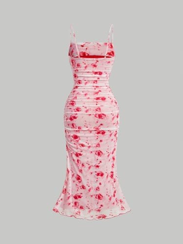 GORGLITTER Women’s Floral Ruched Bodycon Midi Dress Mesh Sleeveless Fishtail Cami Dresses
