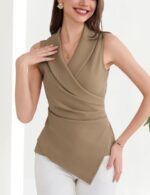 Home Women's Fashion Tops & Blouses GRACE KARIN Women’s Wrap V Neck Casual Work Tops Sleeveless Office Dressy Summer Blouse Asymmetrical Elegant Shirts