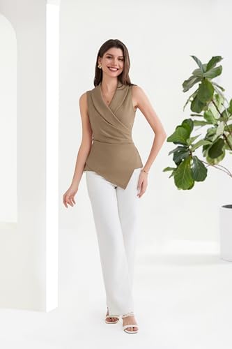 GRACE KARIN Women’s Wrap V Neck Casual Work Tops Sleeveless Office Dressy Summer Blouse Asymmetrical Elegant Shirts