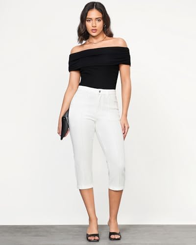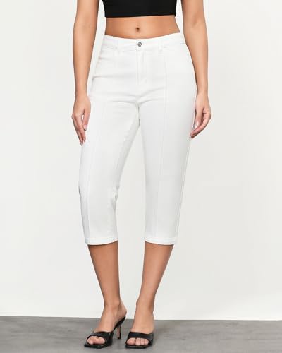 GRAPENT Capri Jeans for Women High Waisted Stretchy Denim Capris Front Seamed Cropped Skinny Slim Fit Jeans with Pockets