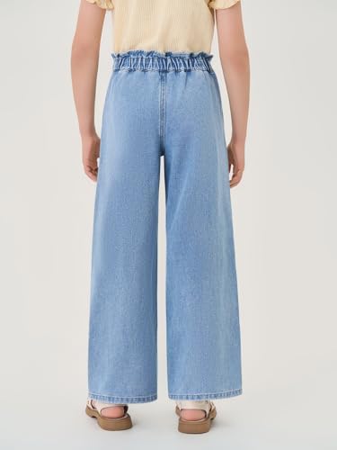 Haloumoning Girls Cute Wide Leg Flared Jeans Kids Oversized Elastic Waist Paper Bag Pants with Pockets 5-14 Years