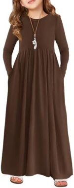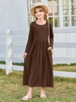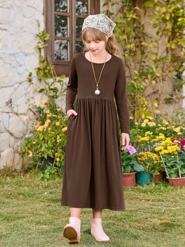 Home Kids’ Fashion Girls (3-12 Years) Haloumoning Girls Maxi Dress Long Sleeve Casual Holiday Dress with Pockets for 5-14 Years